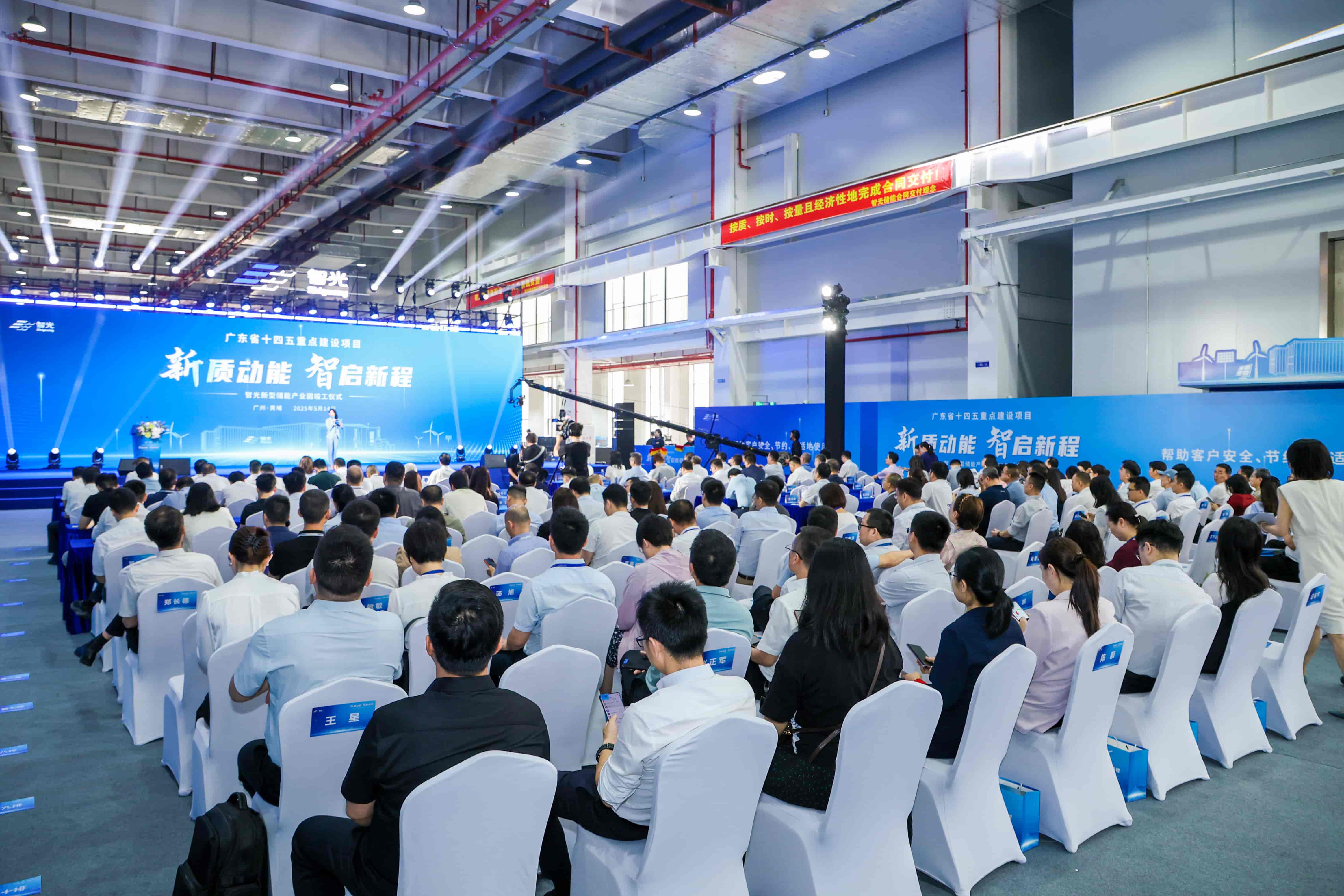 5月14日,智光新型儲能產業園竣工儀式在廣州智光電氣股份有限公司(以下簡稱智光電氣)永和園區圓滿舉行,智光電氣董事長李永喜、總裁姜新宇等經營班子及各分子公司部門領導,行業專家、合作伙伴、供應鏈、財經證券、權威媒體、項目建設相關單位超過200人出席活動,共同見證儲能產業智造高地和綠色數字化工廠行業新標桿的崛起!